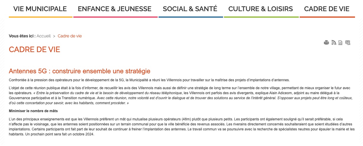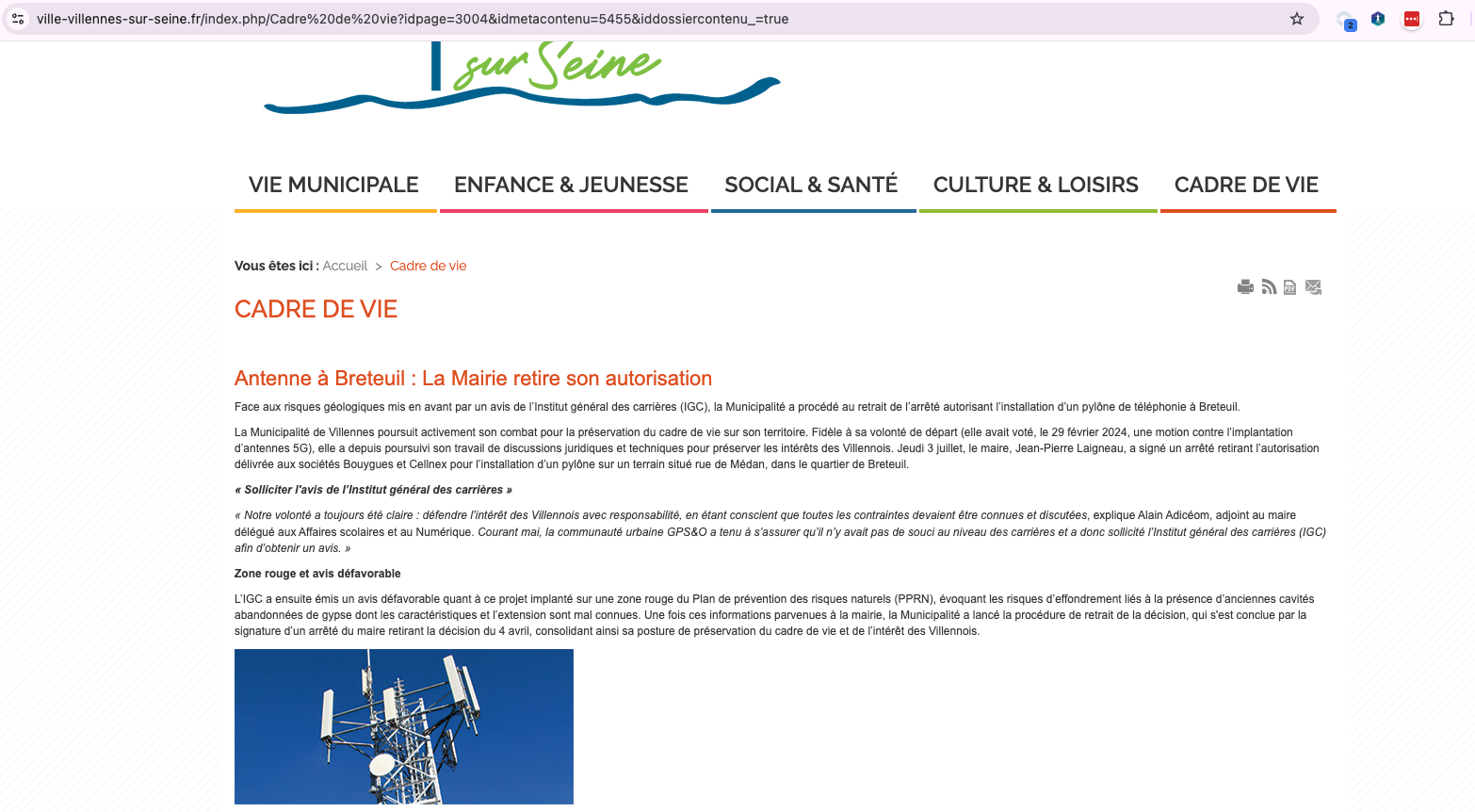 En 2023 la Mairie de Villennes sur Seine s'oppose au projet d'implantation de l'antenne de Bouygues